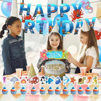 Blue Birthday Party Balloon Set Marine Animal Alphabet Banner Party Supplies